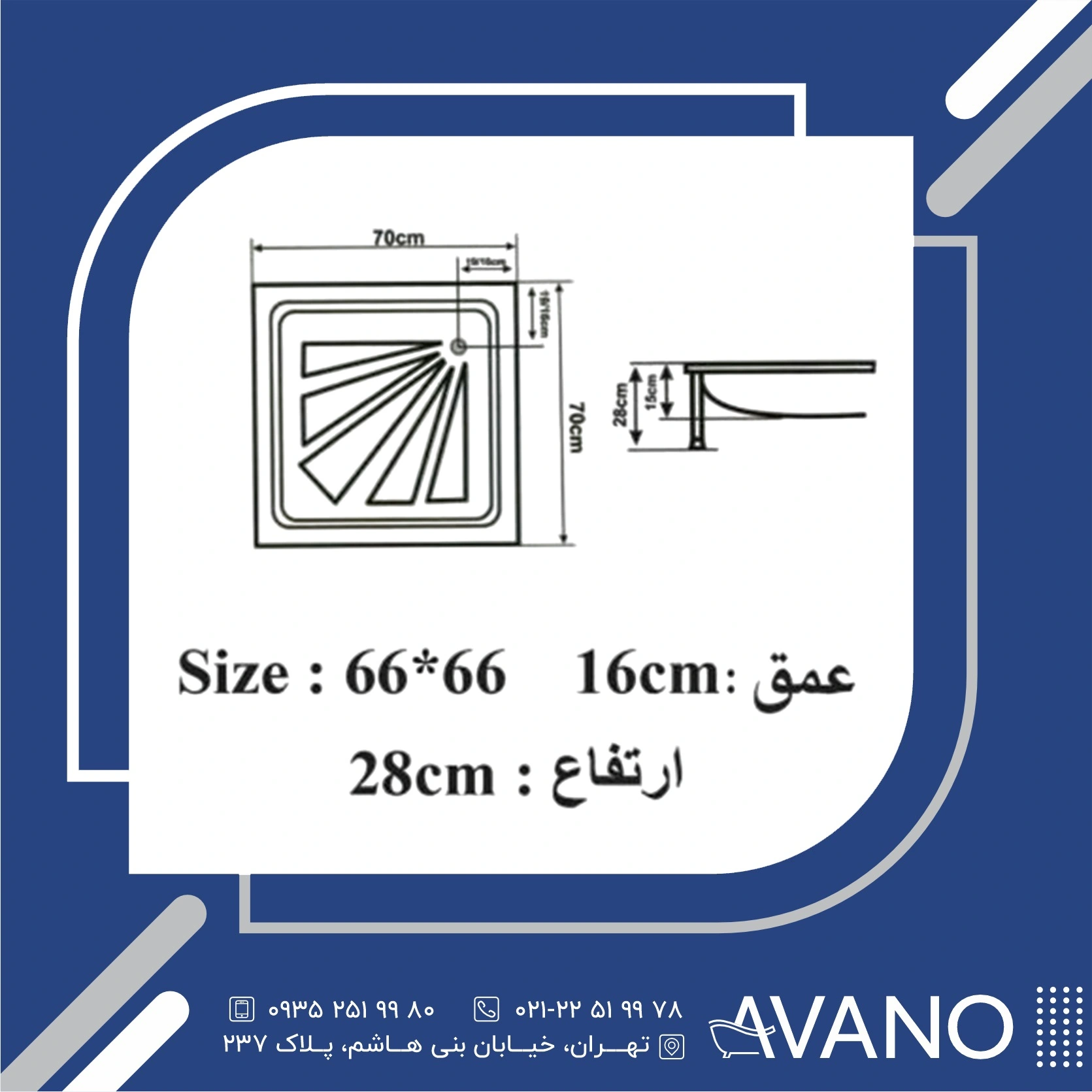 زیردوشی دریا وان مدل شقایق چهارگوش کم عمق 120*90